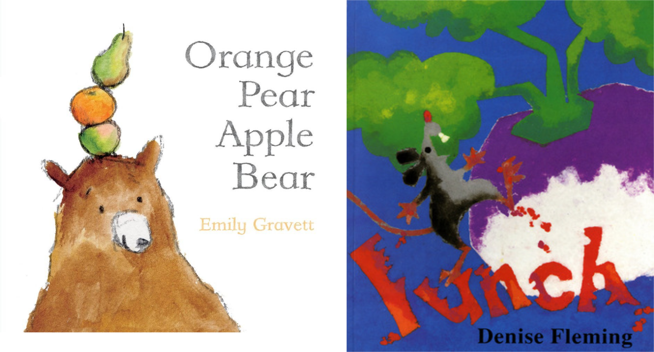 Denise Fleming is a prolific author whose work supports early literacy in many ways. She uses her quirky art in Lunch to share food, colors, and shapes. I used the felt board with the book to add another layer of interest.